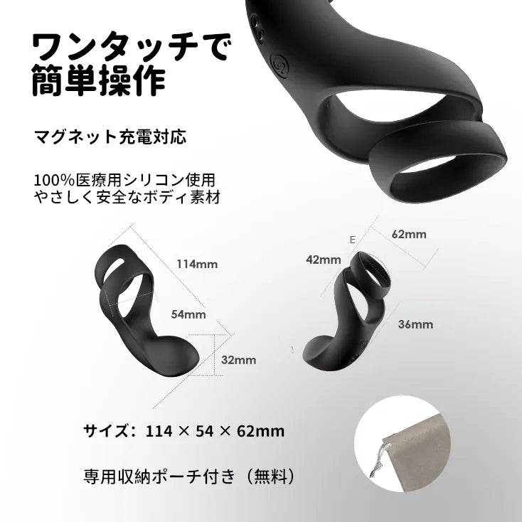 2 つの伸縮性のある双環で快楽を噴き出させましょう